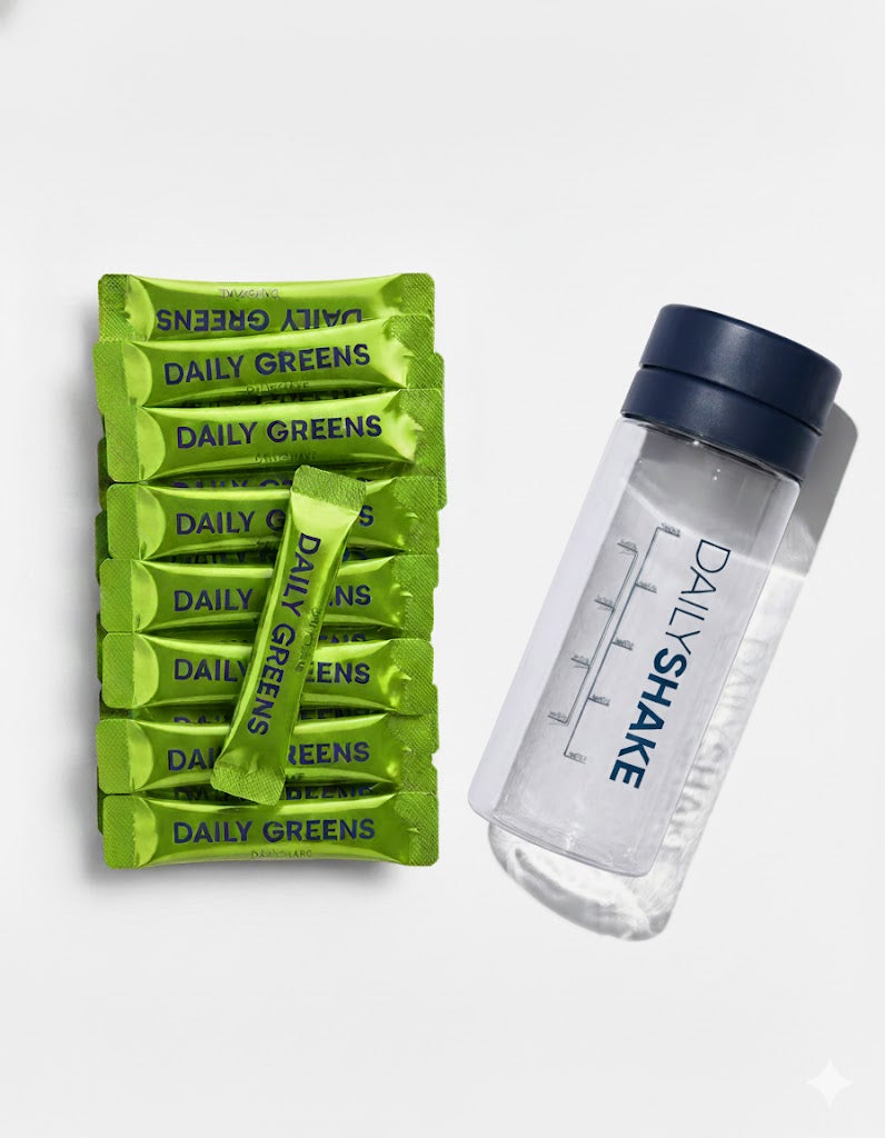 - Juicy Berry Bundle: Daily Greens - 28 x Sachets + Premium Shaker Bottle